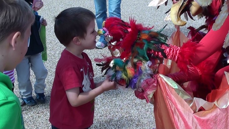 “The Phoenix came to Radnor Fringe Festival in 2016. The moment she arrived, the children hushed and gathered, absolutely mesmerised. We adored her gentle, yet powerful presence around the festival site. Captivating young and old as she went, she stopped along the way to enthral and draw audiences in to share her secret, and mementos of her magical visit. I would thoroughly recommend The Phoenix as a visually stunning, subtly musical and heart-warming piece of glide-about theatre.”