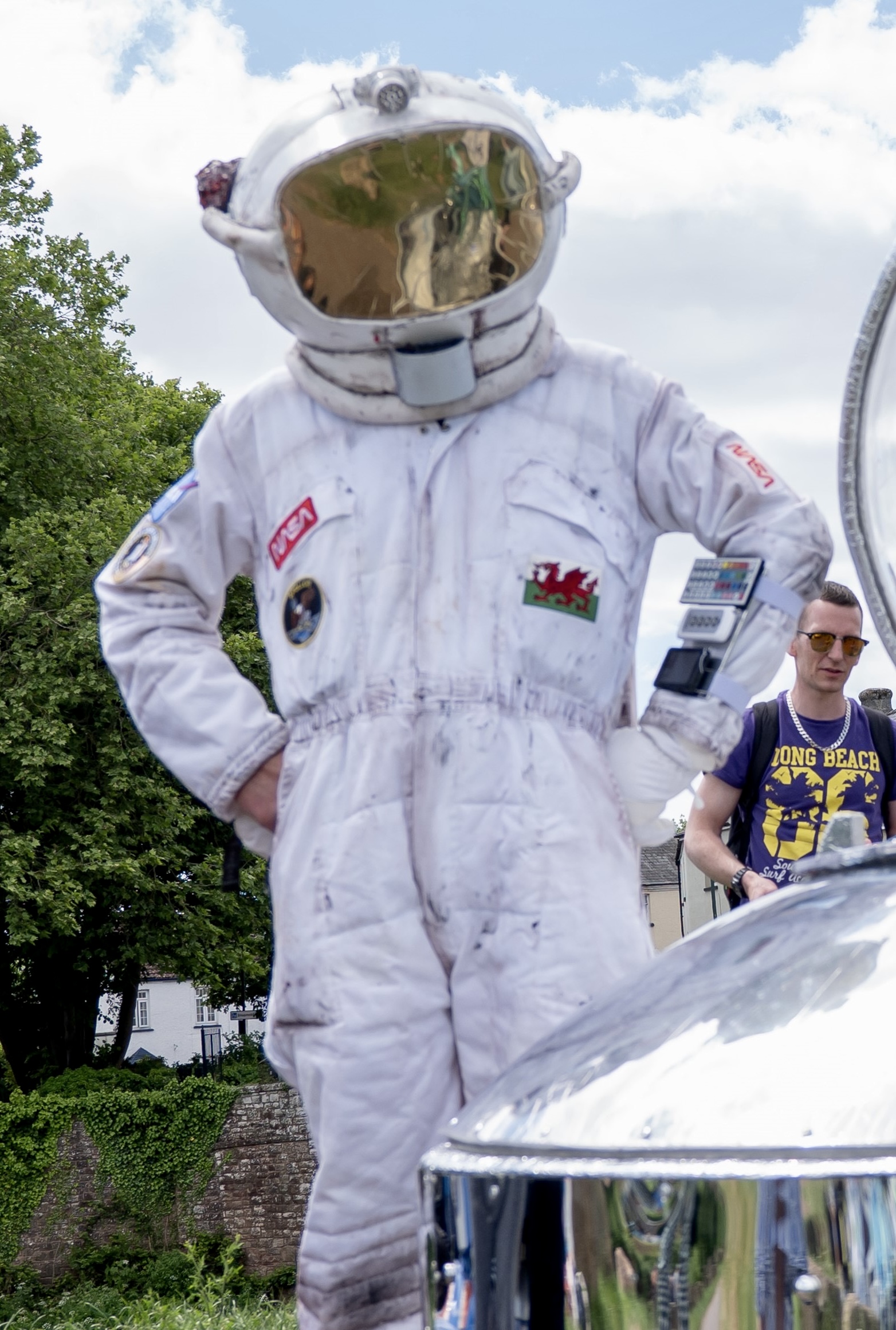 A clear Acrylic domed top will open as Aileen stops to interact with humans, closing again as the Spaceship moves off. A sci-fi sound track will play from an onboard PA, with voice changing effects on Aileens voice. The spaceship contains a host of comedy ‘props and Weapons’: Eg – a portable theremin scanning device… a Ray Gun to defend against space-invaders… an X-ray device to see what you had for breakfast…. She might even have to get out ‘The Probe’ !
